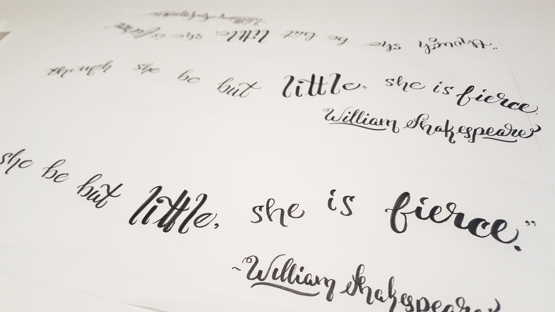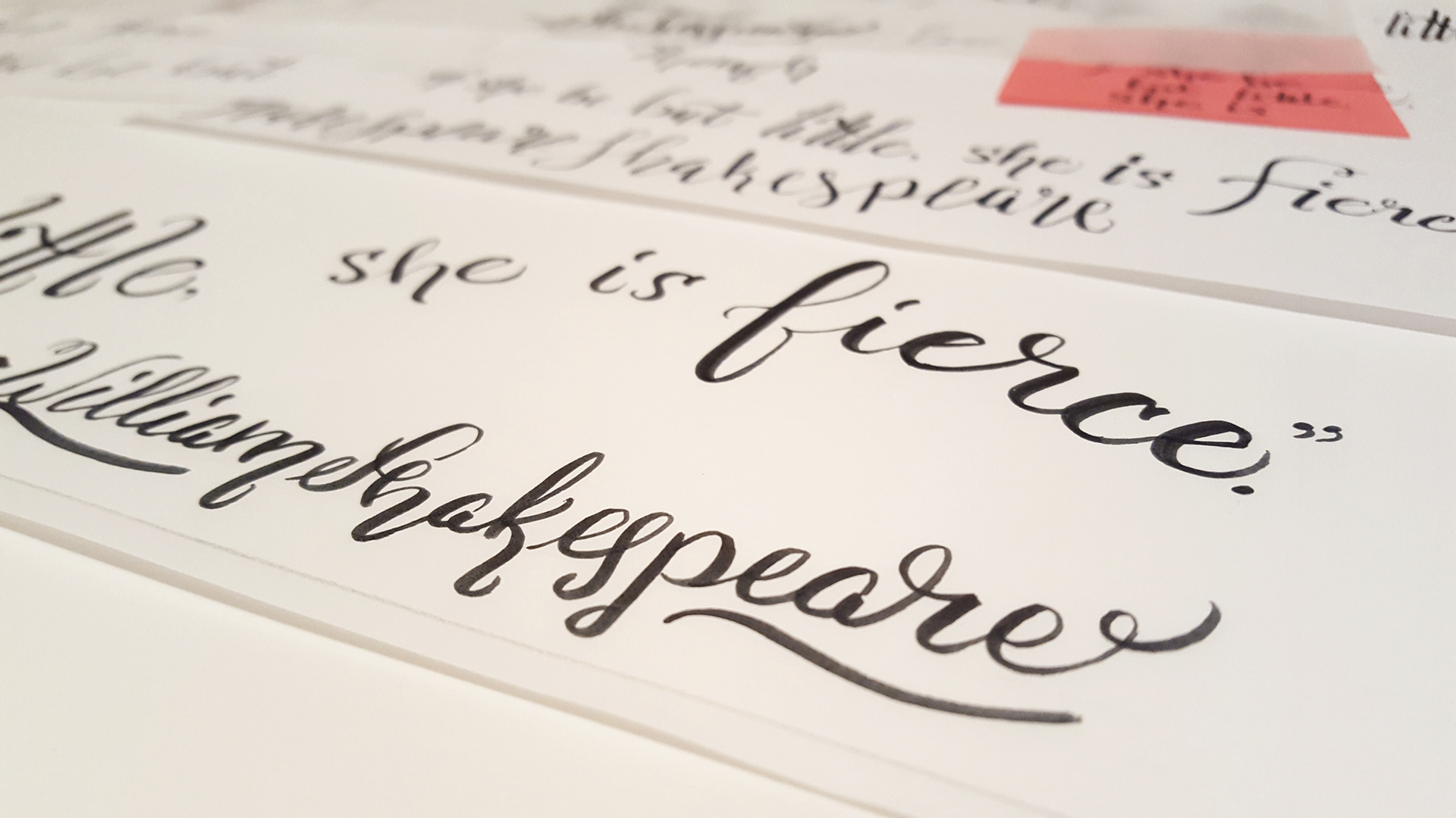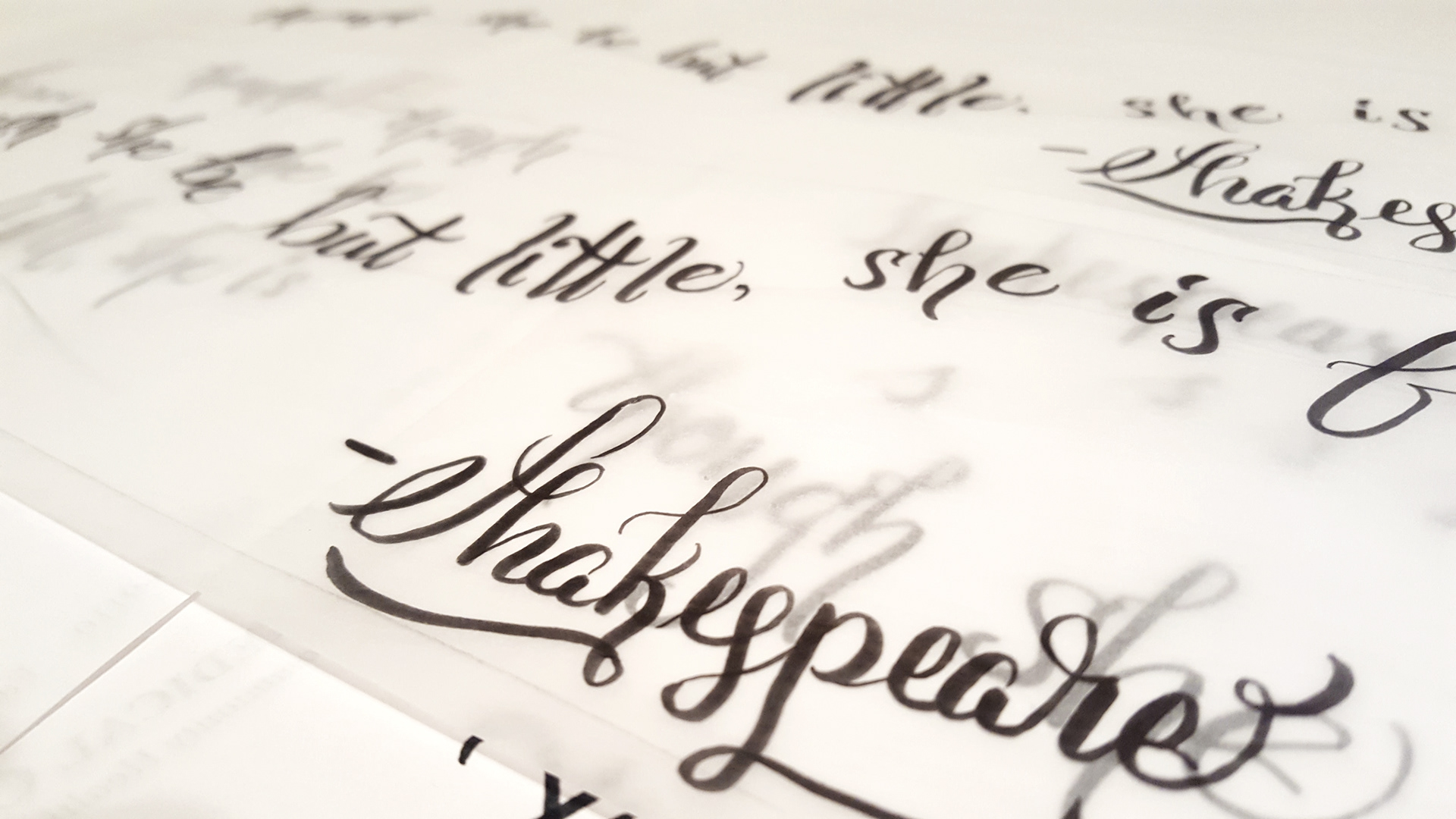 Well, by now you probably have a good idea about my process. Nothing changes for this Shakespeare quote commission. First, experimenting with various lettering styles > client chooses a style > start refining chosen style > more refining > more refining > create vector > done!